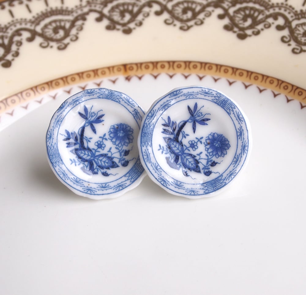 these lovely ears studs have a beautiful blue willow design and an easy to wear post and butterfly back. they are made of ceramic with silver plated findings.