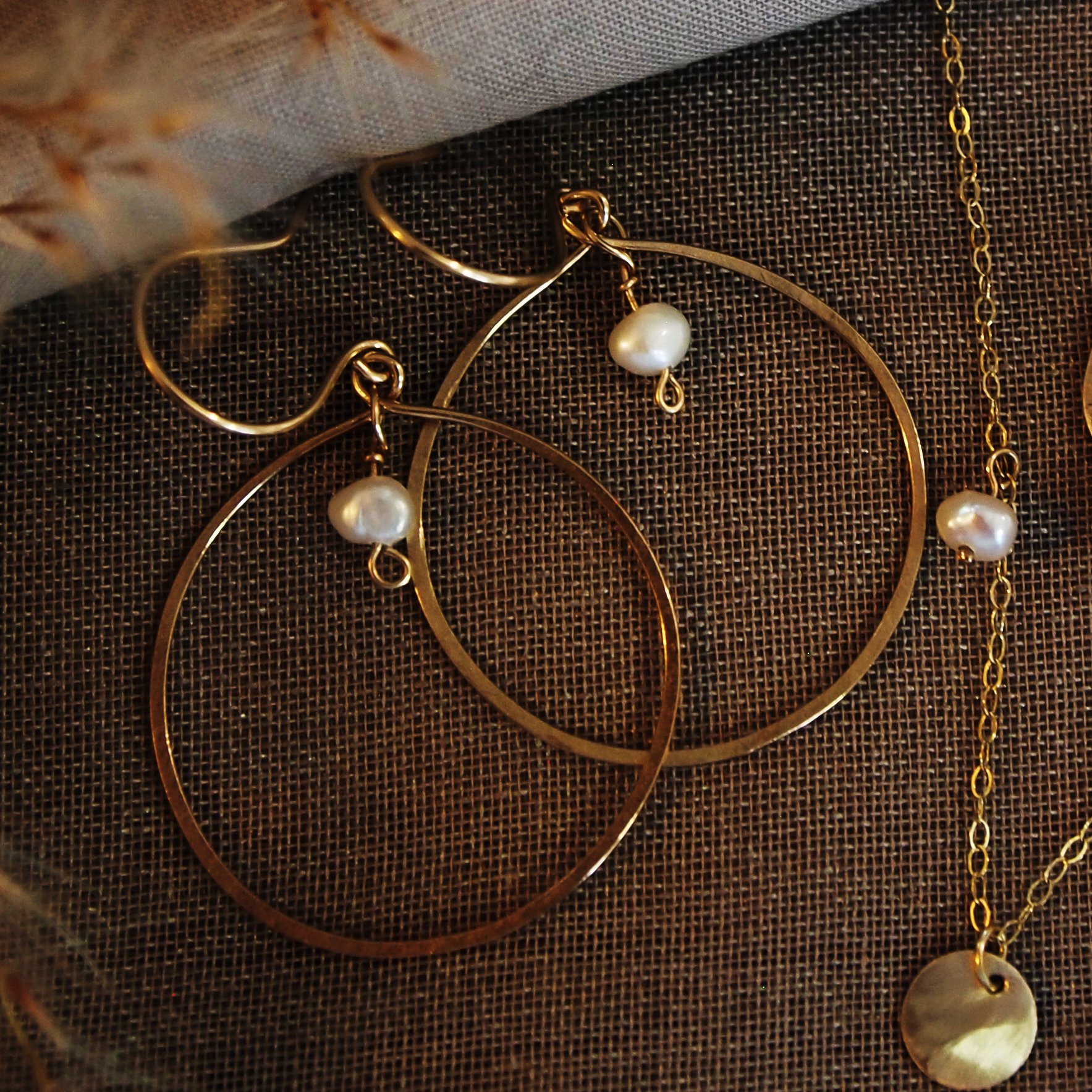 These are the hoops that you start wearing and never take off! They are beautifully buttery gold and the soft cream of the pearl shows that gold off to perfection.