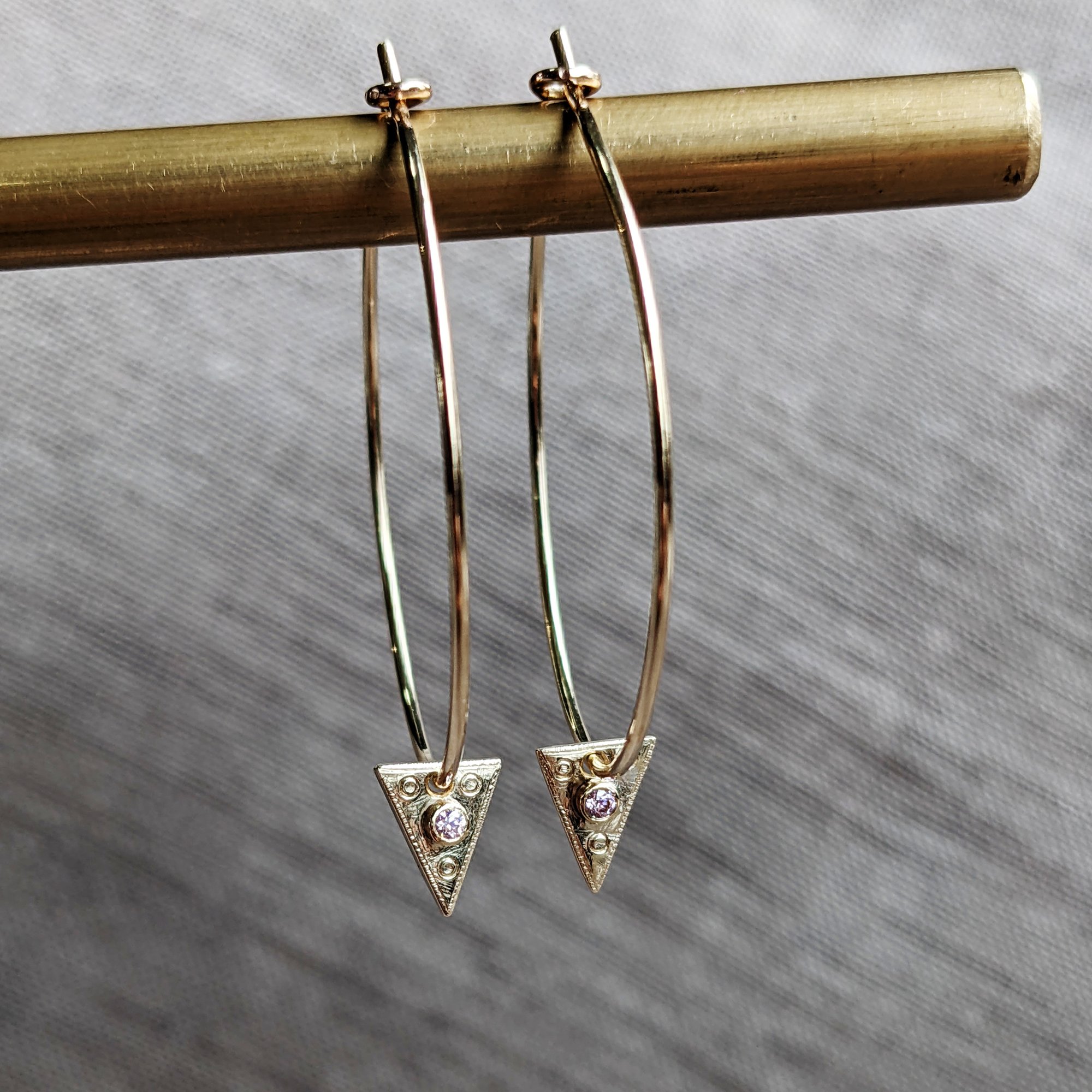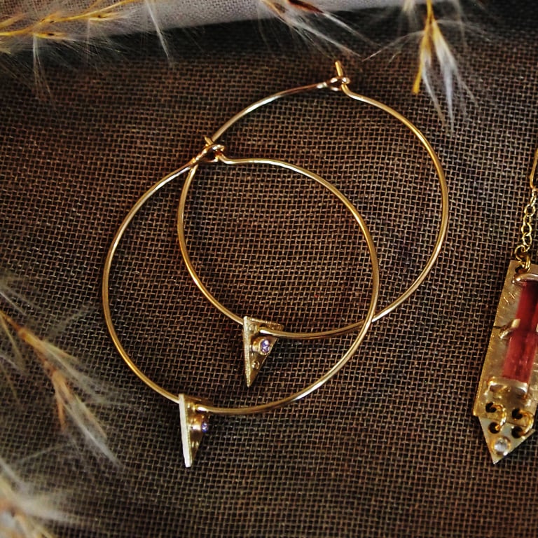 Eco Gold & Pink Tourmaline Hoops
