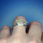 I have mounted the stone on a band of square sterling silver, positioning it to one side you can see the stones beautiful shape.