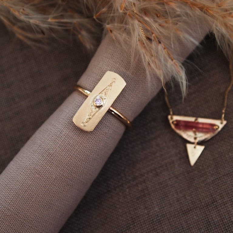 9ct Eco gold ring set with a gorgeous pink tourmaline gem stone.
