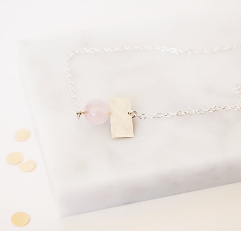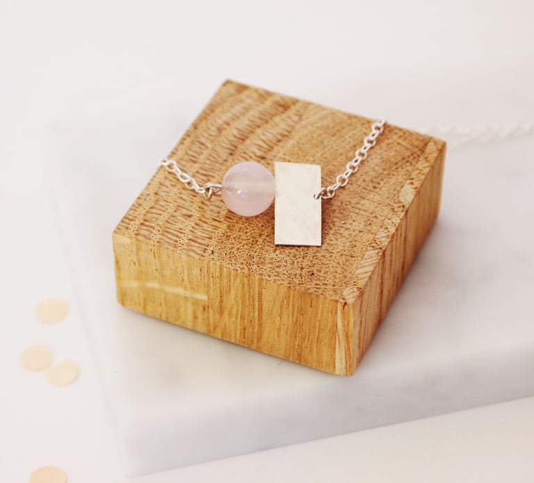 Made from rose quartz and Sterling silver the Quartz and Square Necklace looks fab! It is modern and minimal but feminine at the same time.