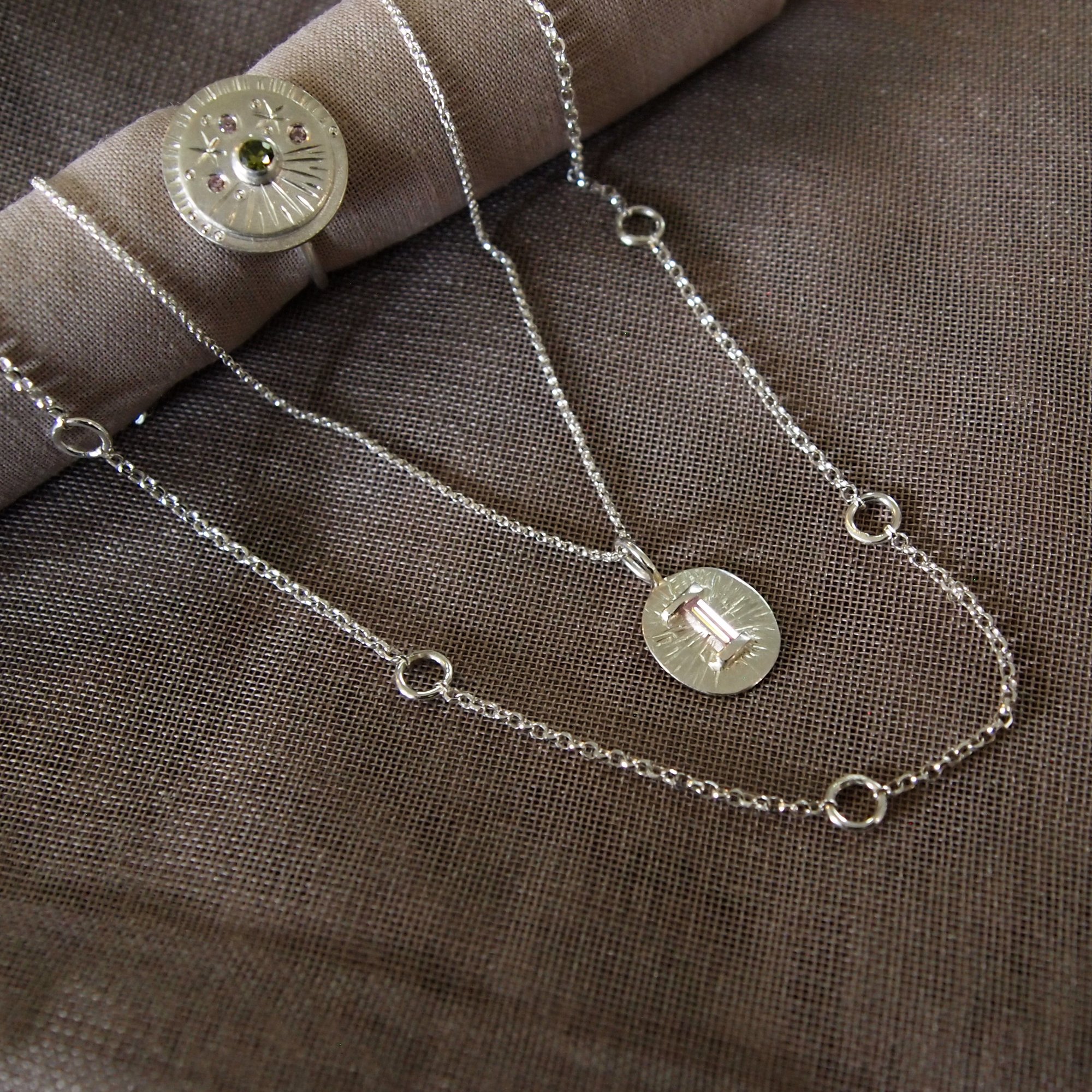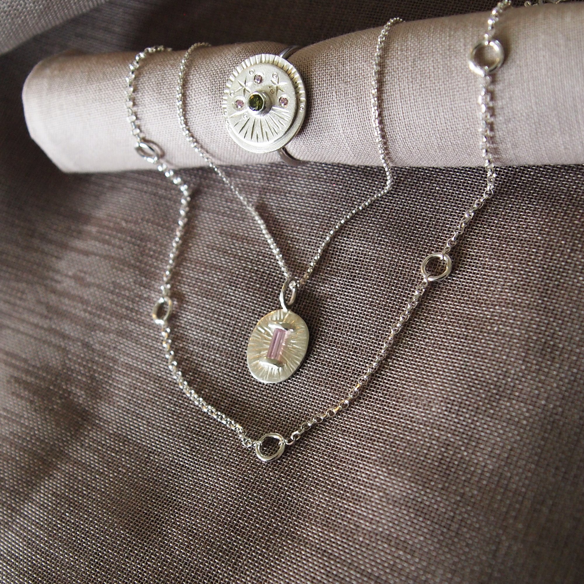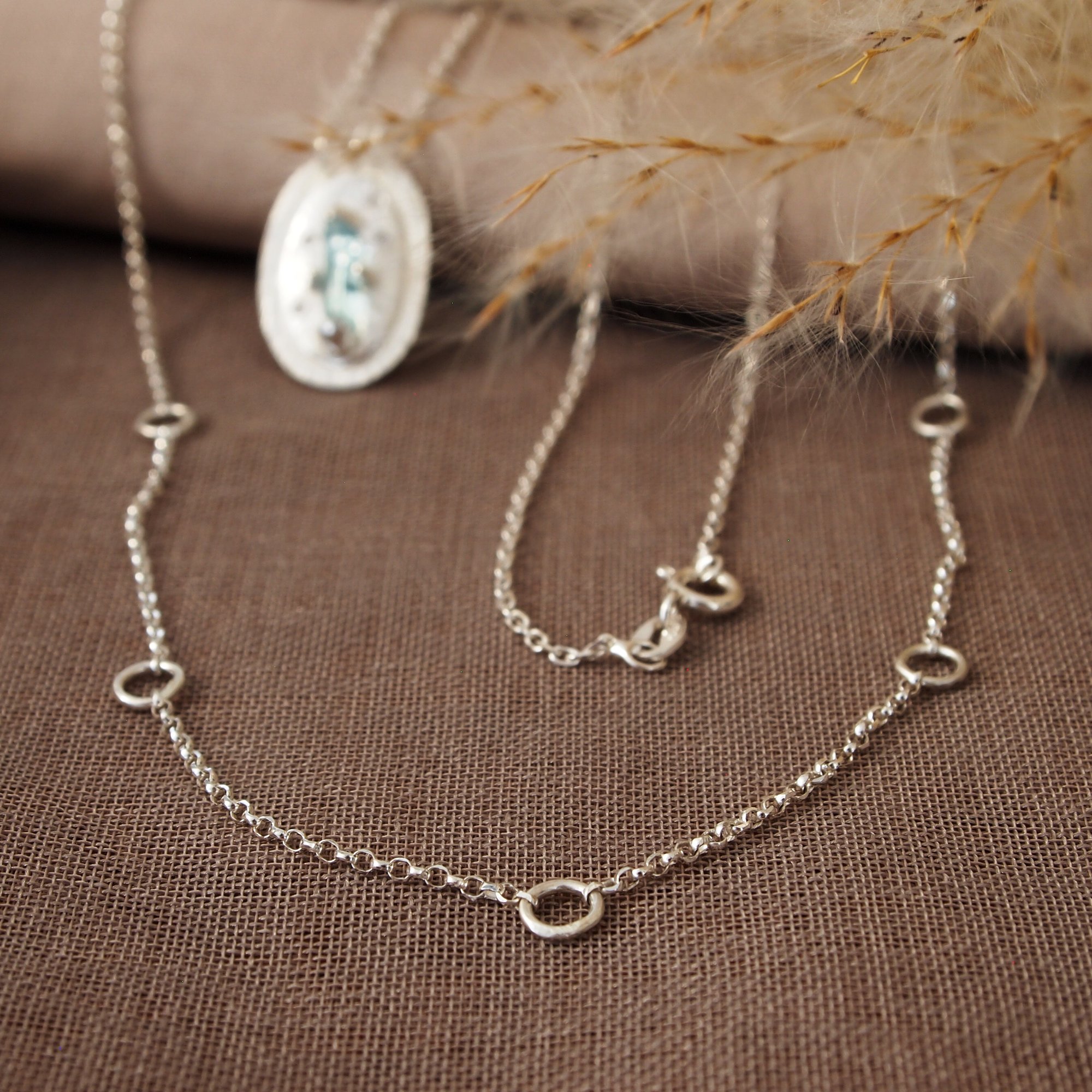 The silver Orbit Necklace holds five delicate 'o's on a lovely medium weight belcher chain.