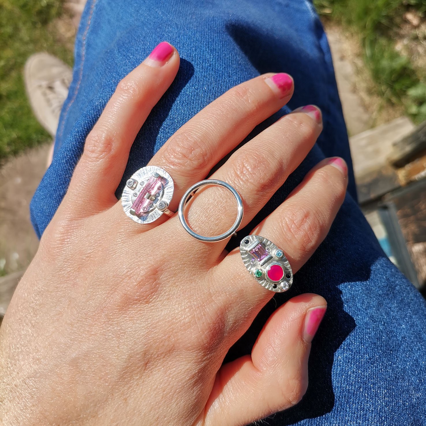 A Stunning ring made in house from recycled silver and ethically sourced gem stones.